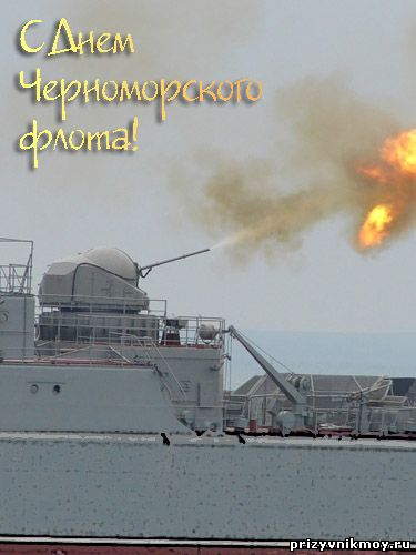 | Кому-то курорты, Анапа да Сочи,   Кому-то служебный мотив.   Загар кто-то ловит все дни и все ночи,   Кто служит на благо страны.   Всем тем, кто на море несет свою вахту,   Кто отдых забыл на года –   Сегодня желаем, чтоб счастье и радость   Шли рядом по жизни всегда!       С днём Черноморского флота! Слава морякам!