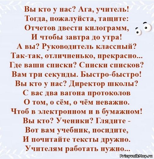 | Добавлено (12.01.2016, 18:39) --------------------------------------------- это на ночь вам, про нас училок... и спать пошла... пошла и пошла, и пошла