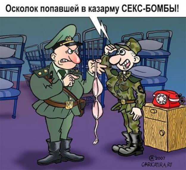 Мои родители рассказывали, как во времена их службы солдаты умудрились провести и поселить на территории объекта (за КПП и 2-мя метрами проволоки под высоким напряжением) во вспомогательном помещении такую общую подружку. Носили ей покушать по очереди и т.д. Продолжалось это безобразие почти месяц...