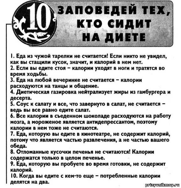 | Цитата tnk-2695 (  ) А, вторая диета называется у меня "проводи сына в армию" и того я сейчас вешу 49 кг.... А СО МНОЙ ЭТА ДИЕТА СЫГРАЛА ЗЛУЮ ШУТКУ, ЗА ПЯТЬ МЕСЯЦЕВ СЛУЖБЫ СЫНА МЕНЯ РАСПЁРЛО ТАК, ЧТО Я НЕ ВХОДИЛА ДАЖЕ В ЗИМНЕЕ ПАЛЬТО.БЕРЕМЕННАЯ ХУДЕЕ БЫЛА! ПРИШЛОСЬ МЕСЯЦ ТУПО ЗАКЛЕИТЬ РОТ.