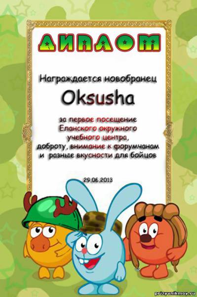 | Цитата (sapphire) у всех нас мамочек и папочек дембелей душа поет, не верим, даже, неужели год прошел и дооождааалиись! Цитата (zanzarah) над было сказать-ниче не знаю,в другие дни-занята....им же лучше отправить человека сразу к маме в объятия,чтоб с впд не париться Цитата (sapphire) Да, у нас на форуме, что творится в предверии дембеля наших сыновей, а представляете, что творится в сердцах и душах наших солдатиков? Еще недавно год им казался вечностью и вот осталось до дома, до родного дома, который снился весь год по ночам, совсем немного времени! сын говорит даже не спится в последние дни, разные мысли посещают