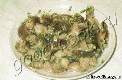 Баклажаны вымыть и порезать кубиками со стороной 1,2~2 см. Маринад довести до кипения, опустить в него баклажаны и варить от момента закипания 5 мин. Баклажаны вывалить в дуршлаг и оставить стекать на 2~3 часа. Чеснок измельчить, укроп мелко порезать. В большой миске перемешать баклажаны, чеснок, укроп, растительное масло Хранить в холодильнике в стеклянной банке.- Единственный минус.