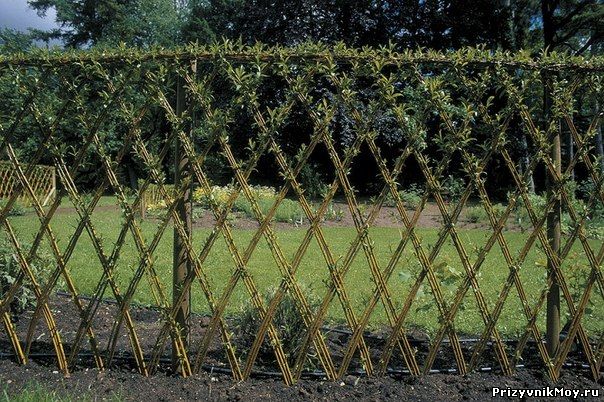 Живая изгородь из ивы, я так понимаю ее рассаживают и сплетают, интересно как такая будет выглядеть через лет 10