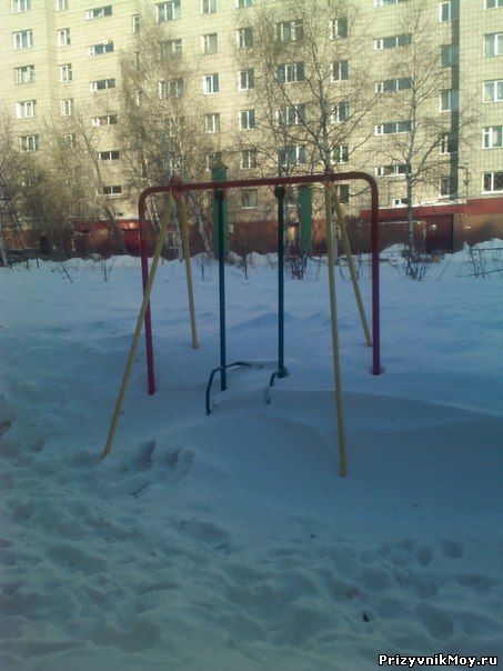 К вопросу о том, сколько в Томске снега.... Вышли мы значит сегодня с Мишкой качаться на качеле, а там...