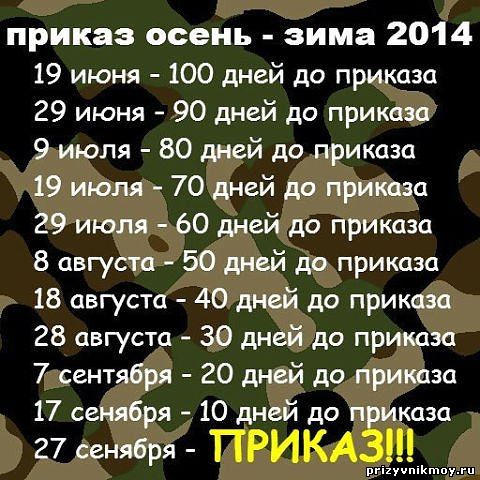 | Цитата Orca (  ) отсчёт начат ! Лето быстро пролетит ,а там и дембель ваш не за горами.Добавлено (31.05.2014, 19:10) --------------------------------------------- Колобок, Света уже 180 дней