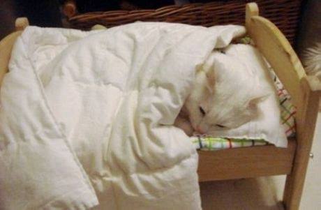 Спать пора на бочок!