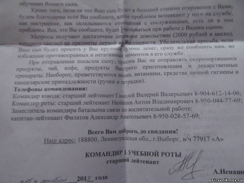 | MamulyaOlya, да там пишут что матрос прибыл в часть, ему предоставлены все удобства и тп, телефоны командиров