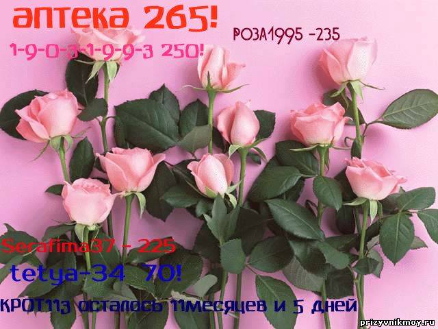 | всем добрый день!!! аптека-265 дней!!! Ленуся, 250!!! 1-9-0-3-1-9-9-3 250 дней!!! роза1995, 235!!! Marena, 2 мес и 10 дней!!! KPOT113, осталось 11 мес и 5 дней!!!ВСЕХ С ДАТКАМИ!!!!!Добавлено (30.07.2013, 15:28) ---------------------------------------------