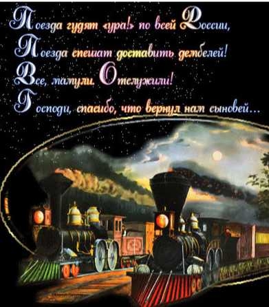 Милашка, Людмил,не переживай!!!Домой в дороге все едут в гражданке!!!Это уже перед выходом из поезда переодеваются в парадку(если есть)!А так должны ехать только в гражданке!