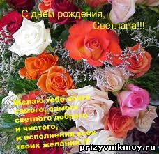 Для нашей Светланы желаем мы дружно, Быть самой любимой, желанной и нужной, Обворожительной, самой красивой, Оригинальной и неповторимой!