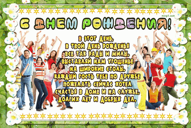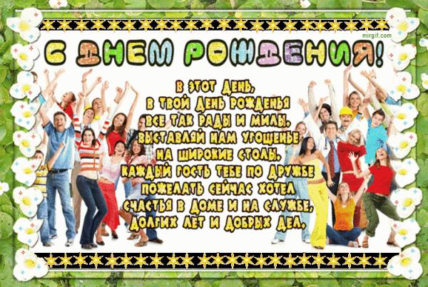 Поздравляю тебя в день рождения чудесный, Пусть поют соловьи и в душе расцветают цветы, Пусть мысль пронзает птицей свод небесный И превращает в чудо радости мечты!