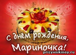 | Мариночка, поздравляю с ДНЕМ РОЖДЕНИЯ!!!! С днем рождения, Марина! Пусть во всем тебе везет, Будь всегда неотразима, Расцветай из года в год,