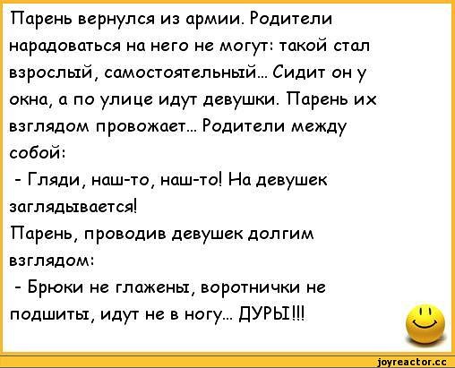 Весеннему дембелю осталось чуть-чуть. Вот картошку посадите и будем ваших мальчиков всречать.